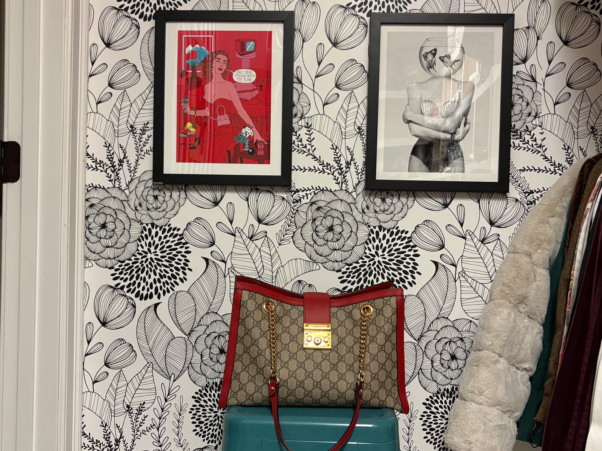 - Dual gold chain + leather shoulder straps