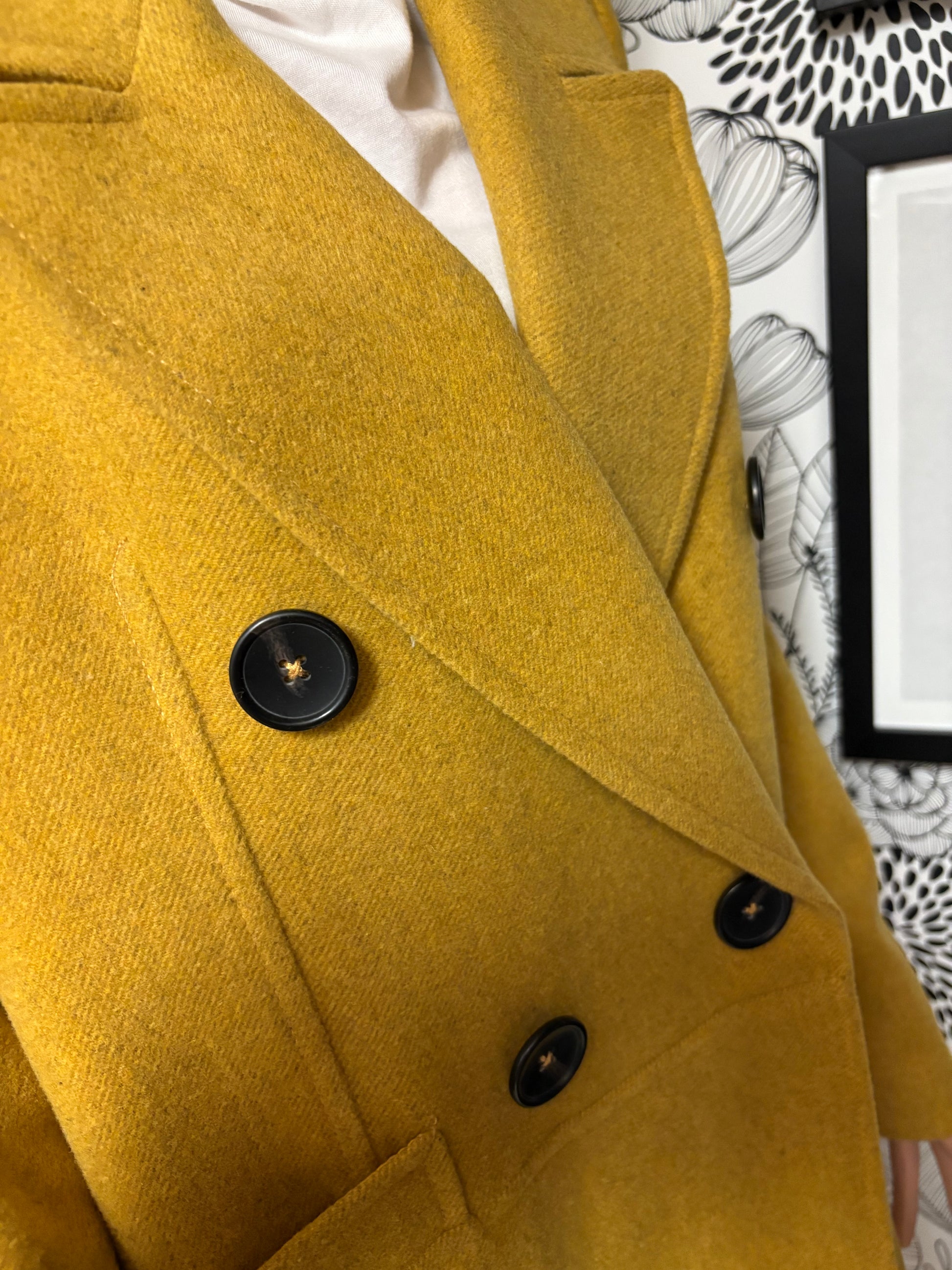 MNG Mango Mustard Yellow Double Breasted Wool Coat – New With Tags